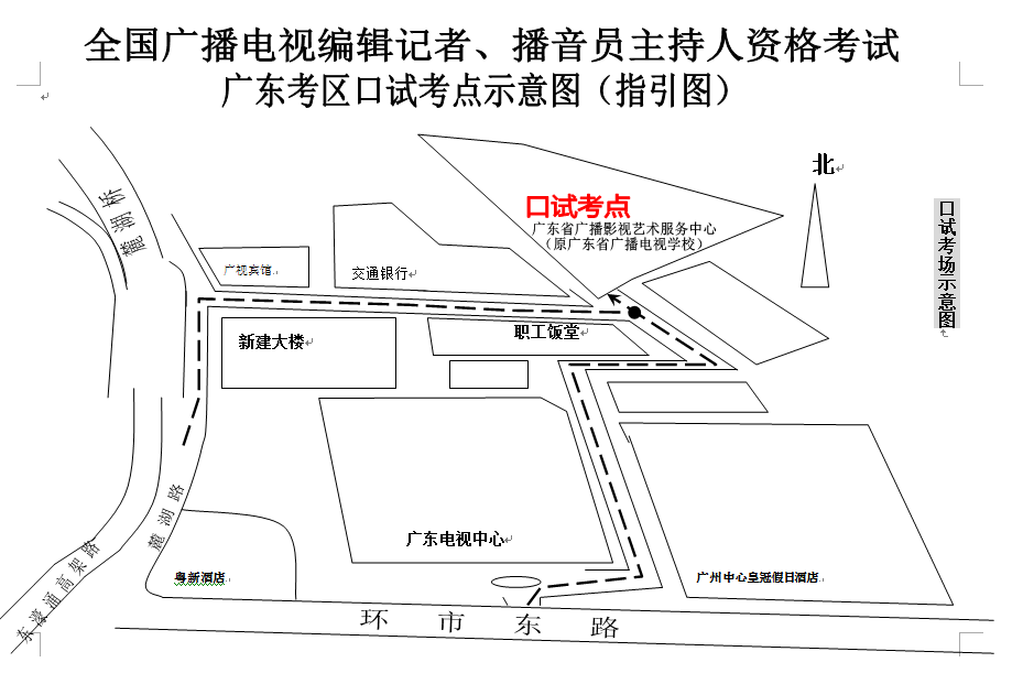 2017年全国广播电视编辑记者、播音主持人资格考试广东考区口试考点示意图