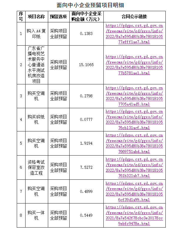 【具体项目明细和链接地址请点击附件查阅】广东省广播电视艺术服务中心2021年度面向中小企业预留执行情况公告(已附超链接).zip