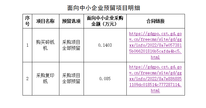 【具体项目明细和链接地址请点击附件查阅】广东省广播电视艺术服务中心2022年度面向中小企业预留执行情况公告(已附超链接).zi